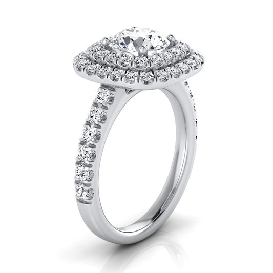 1 9/10ctw Round Diamond Double Halo Engagement Ring With Split Pave Shank In 14k White Gold, Igi-certified