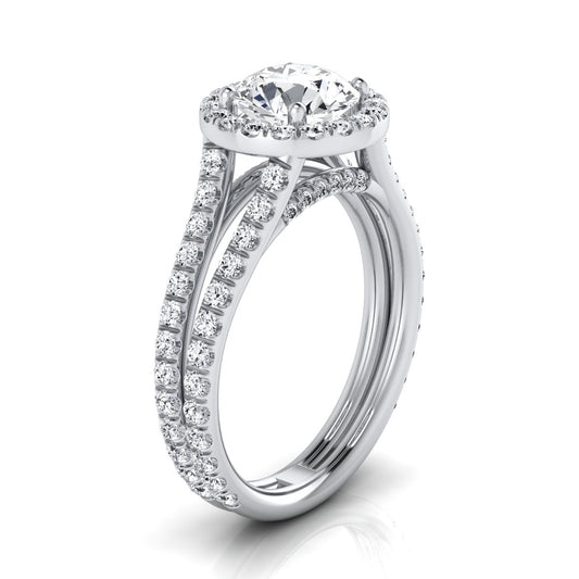 1 7/8ctw Round Diamond Halo Engagement Ring With A Split Shank In 14k White Gold, Igi-certified