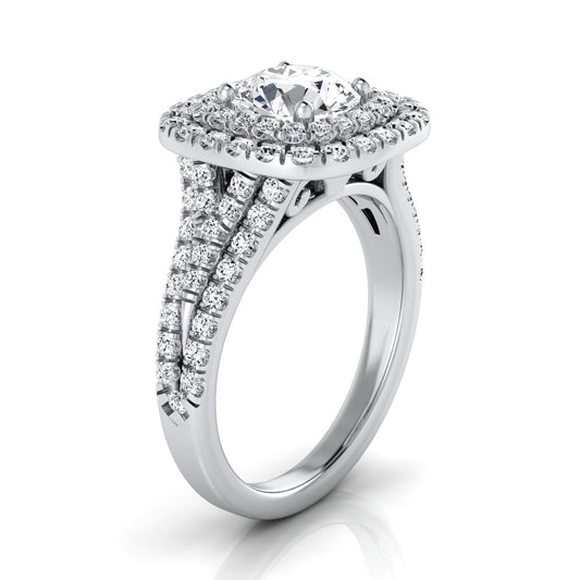 1 4/5ctw Round Diamond Double Square Halo Engagement Ring With Pave Split Shank In 14k White Gold, Igi-certified