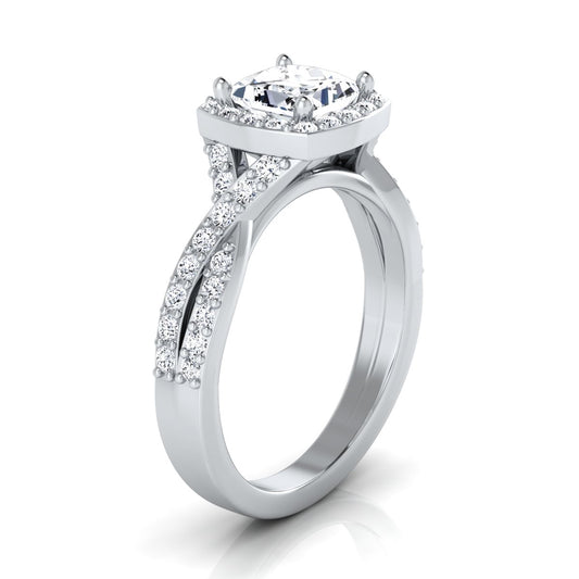 1 3/8ctw Round Diamond Square Halo Engagement Ring With Twisted Pave Shank In 14k White Gold, Igi-certified
