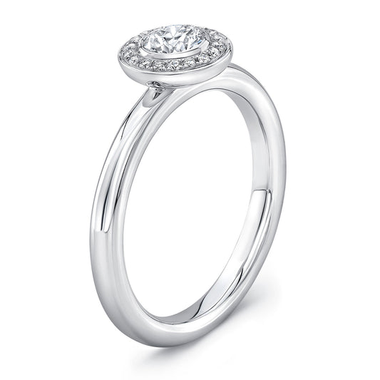 Diamond Engagement Semi Mount Ring With Pave Gallery In 14k White Gold, 0.50ct Round Head