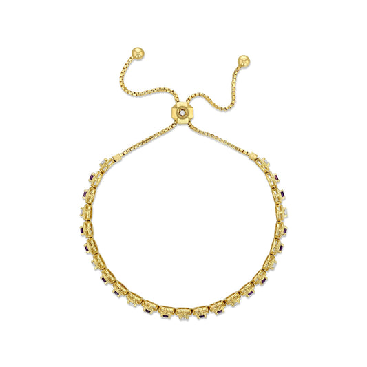 Alternating Amethyst and Diamond Bolo Bracelet in 14k Yellow Gold 1.0ctw