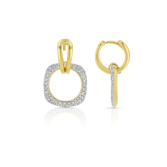 Diamond Geometric Dangle Hoop Earrings in 14k Yellow Gold 3/8ctw