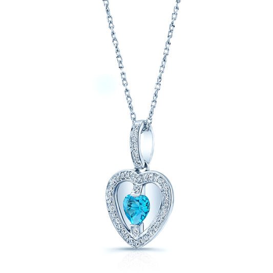 Blue Topaz Heart And Diamond Pendant 14k White Gold