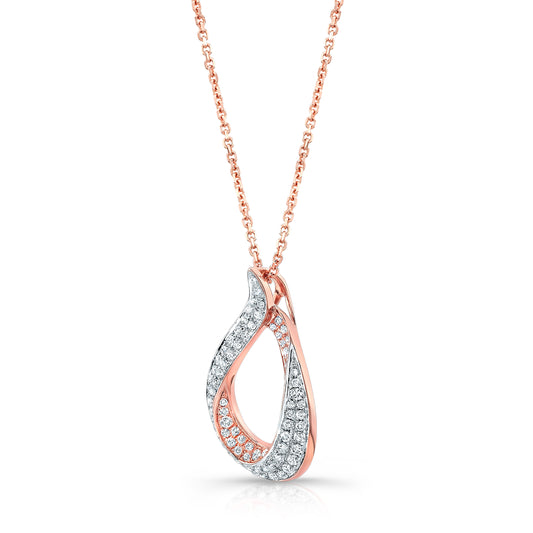Diamond Pave Teardrop Pendant In 14k Rose Gold (17-in Curb Chain)