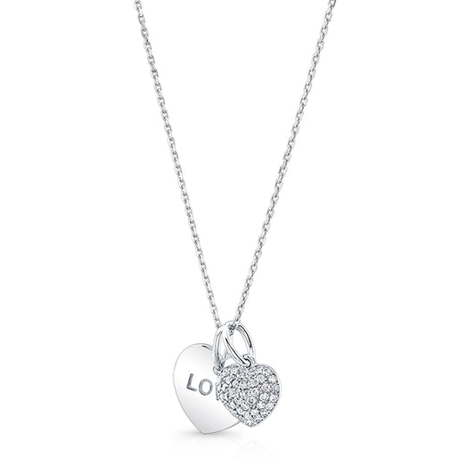 Diamond Double Heart Dangle Pendant In 14k White Gold (17 In Curb Chain)