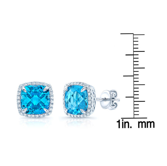 Swiss Blue Topaz & Diamond Earrings In 14k White Gold