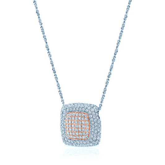Diamond Pave Square Pendant In 14k Two Tone Gold (9/10 Ct.tw.)