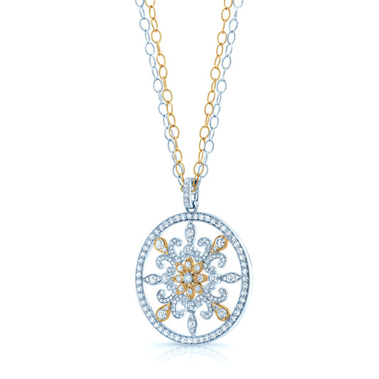 Fleur Di Lis Diamond Pendant In 18k Two Tone Gold (2-1/3 Ct.tw.)