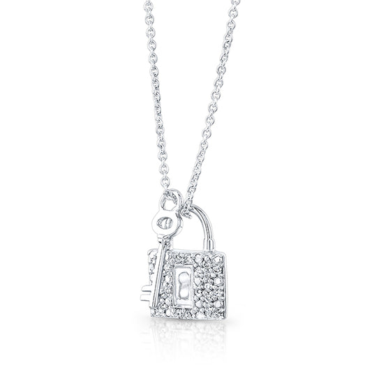 Diamond Lock And Key Pendant In 14k White Gold (18-in Curb Chain)