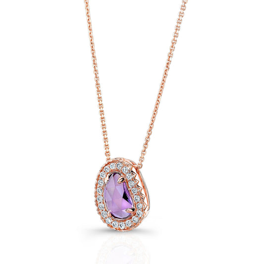 Amethyst And Diamond Fancy Cut Checkerboard Pendant In 14k Rose Gold
