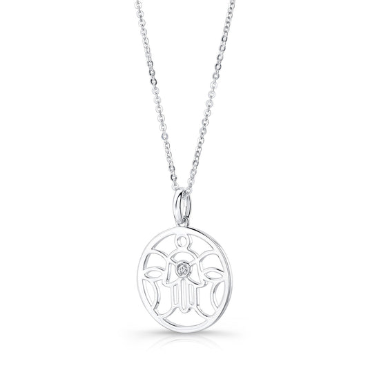 Diamond Khamsa Circle Pendant In 14k White Gold