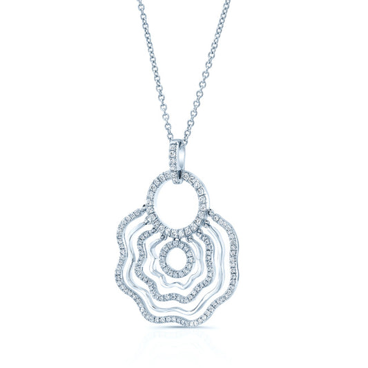 Diamond Floral Wave Cutout Fashion Pendant In 18k White Gold