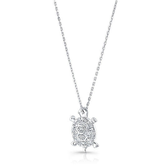 Diamond Turtle Pendant In 14k White Gold (si)