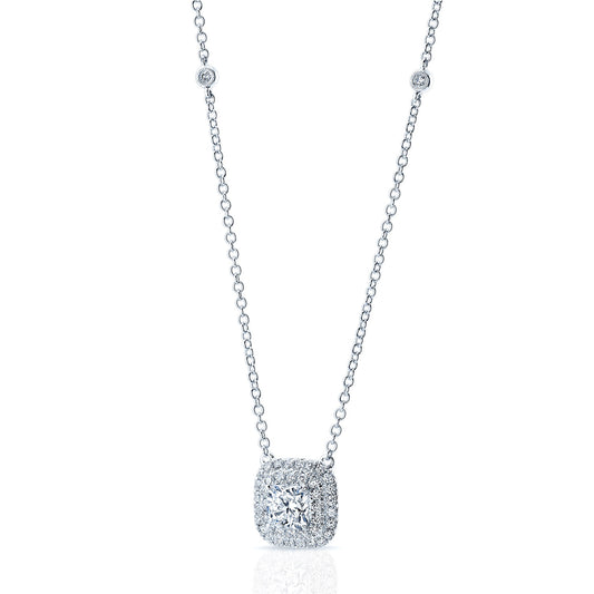 Diamond Double Entourage Cushion Cut Pendant In 18k White Gold (h&a)