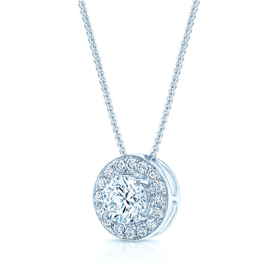 Diamond Round Halo Pendant In 18k White Gold (0.70ct Center)
