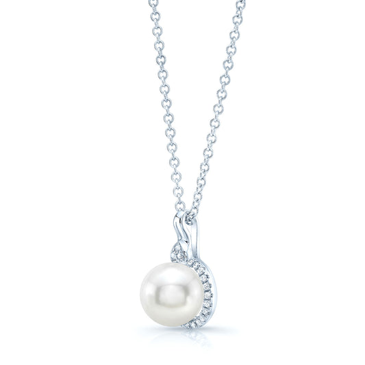 Fresh Water Pearl And Diamond Halo Pendnat In 14k White Gold