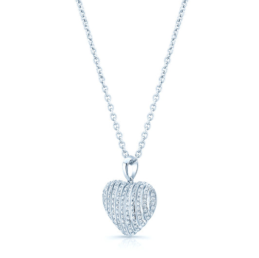 Diamond Pave Cage Bars Heart Pendant In 18k White Gold
