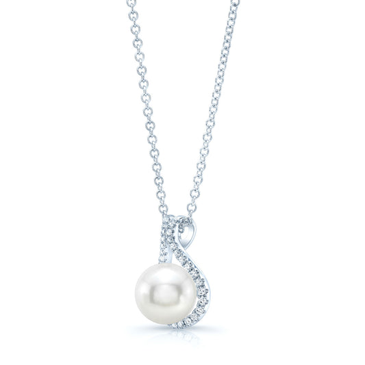 Fresh Water Pearl And Diamond Halo Pendnat In 14k White Gold