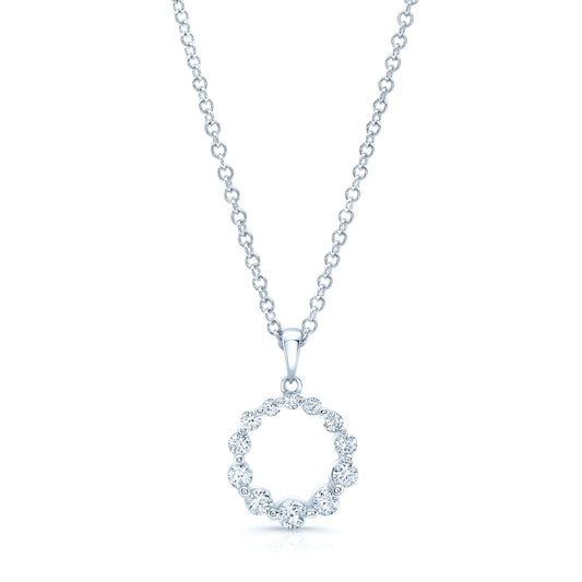 Diamond Graduated Circle Diamond Pendant In 14k White Gold