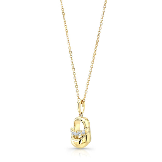 Diamond Baby Shoe Necklace In 14k Yellow Gold Adjustable Chain 14-16 Inch
