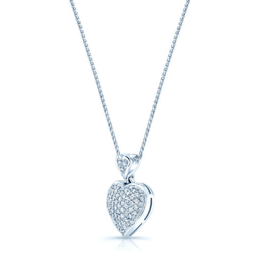 Diamond Double Heart Puff Pave Pendant In 14k White Gold