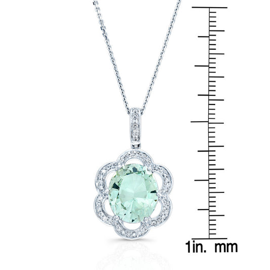 Green Quartz And Diamond Halo Pendant With Trapezoid Bail In 14k Yellow Gold