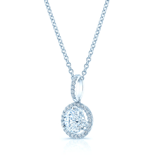 Diamond Round Halo Pendant Mounting With Studded Bail For 1ct Round Center In 14k White Gold