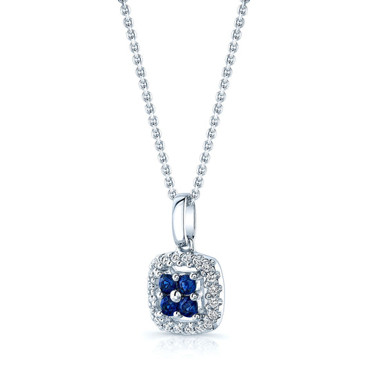 Sapphire And Diamond Floral Pendant In 14k White Gold