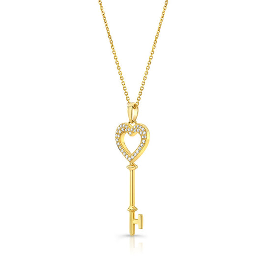 Diamond Heart Key Pendant In 14k Yellow Gold (1/6 Ct.tw)
