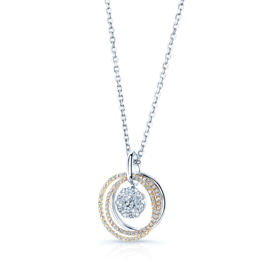 Diamond Three-circle Pendant In 14k Multi-color Gold