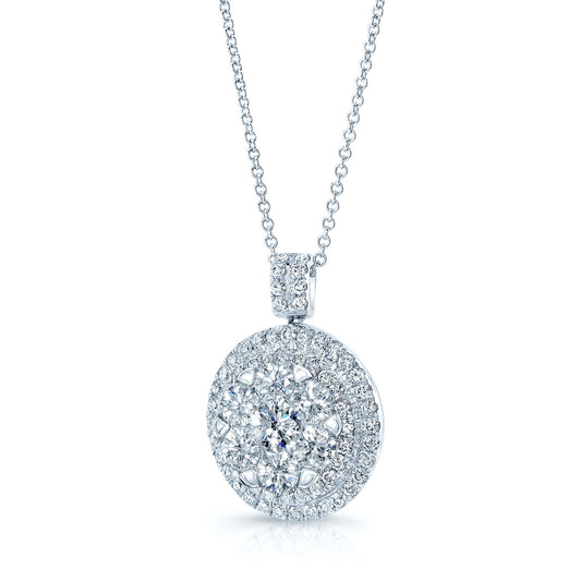 Diamond Double Entourage Pend In 14k White Gold 0.85ctw