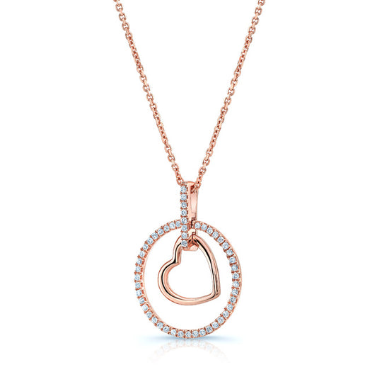 Heart In Circle Diamond Pendant In 14k Rose Gold (1/6 Ct.tw.)