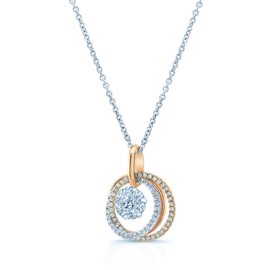 Diamond Three-circle Petite Pendant In 14k Multi-color Gold
