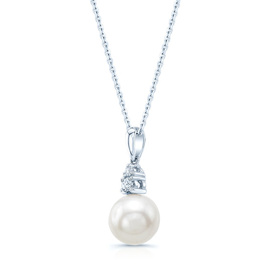 White Cultured Akoya Pearl And Diamond Pendant In 14k White Gold