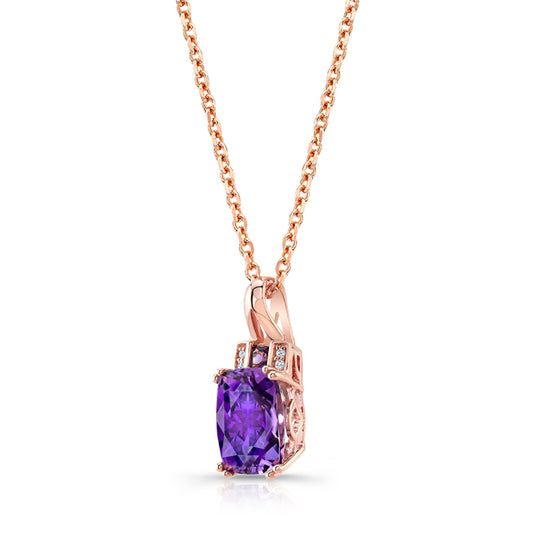 Cushion Amethyst And Pave Diamond Pendant In 14k Rose Gold (9x7mm)
