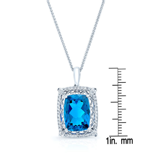London Blue Topaz And Diamond Pendant In 18k White Gold (14x10mm)