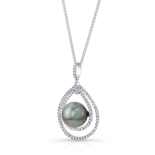 Black Tahitian Pearl & Diamond Pendant In 14k White Gold