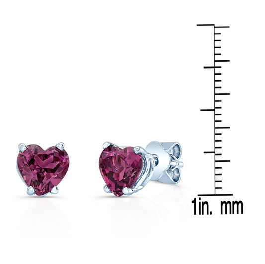 Rhodolite Garnet Heart Stud Earrings In 14k White Gold (6mm)