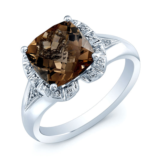 Swiss Blue Topaz Cushion And Diamond Twist Shank Ring In 14k White Gold