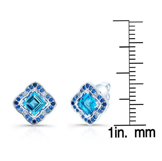 Swiss Blue Topaz, Sapphire And Diamond Earrings In 14k White Gold