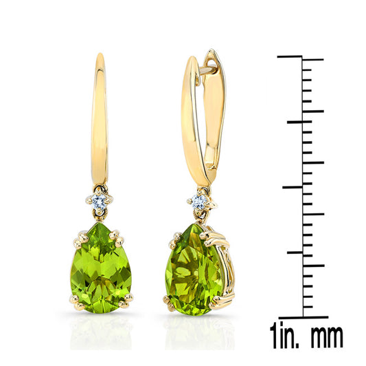 14k Yellow Gold Pear Shape Peridot With Diamond Accent