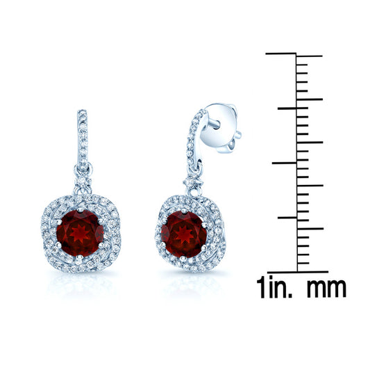 Garnet And Diamond Earrings In 14k White Gold (1/3 Ct.tw.)