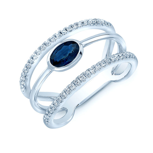Sapphire And Diamond Open Work Ring In 14k White Gold (1/4 Ct.tw.)