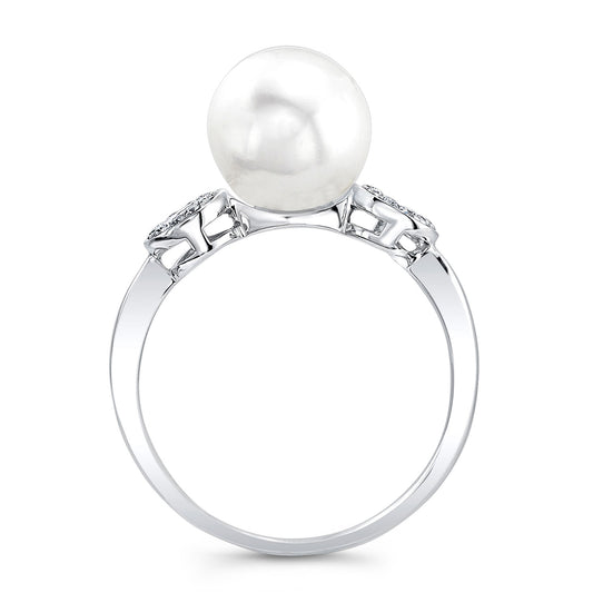 9mm Freshwater Pearl And Diamond Ring In 14k White Gold