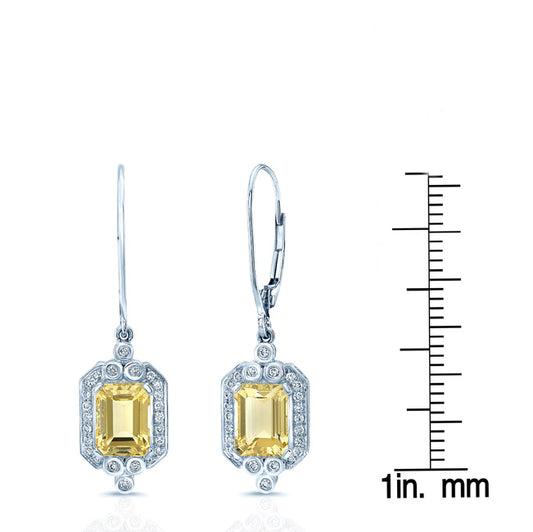 Golden Beryl And Diamond Earrings In 14k White Gold (1/5 Ct. Tw.)