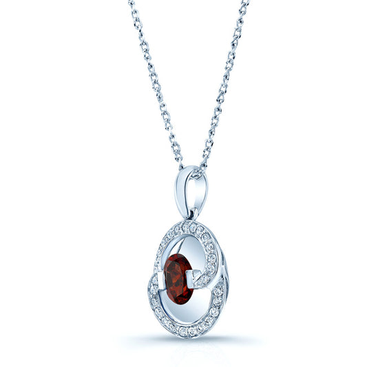 Garnet And Diamond Oval Swirl Pendant In 14k White Gold (17-in Curb Chain)