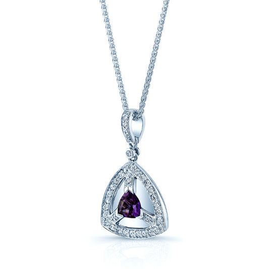 Amethyst And Diamond Triangular Dangle Pendant In 14k White Gold (17-in Wheat Chain)
