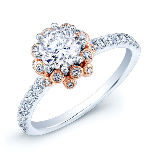 Diamond Engagement Ring With Bezel-set Bubble Collar In 18k Rose And White Gold (1ct Round Cz Ctr)