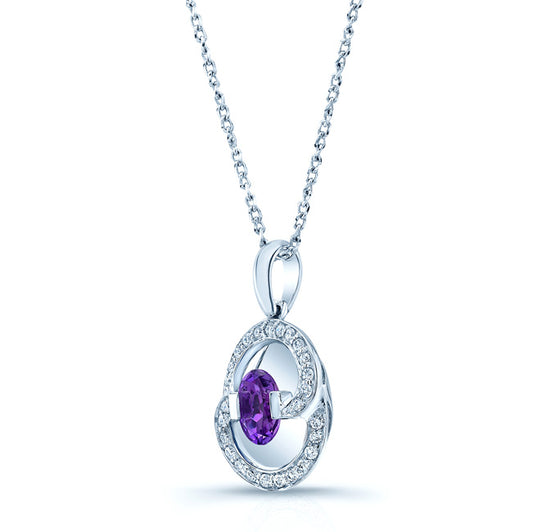 Amethyst And Diamond Oval Swirl Pendant In 14k White Gold (17-in Curb Chain)